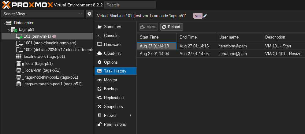 proxmox_vm_qemu.test-vm[0]: Destroying... [id=tags-p51/qemu/101]